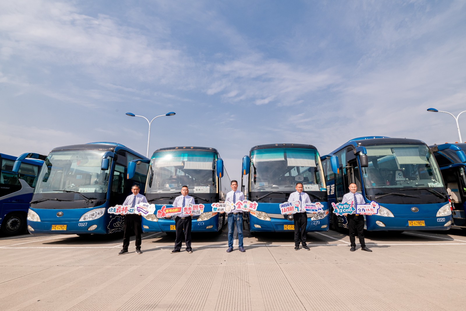 優(yōu)質(zhì)高考,服務(wù)更人性。所有車輛按照標(biāo)準(zhǔn)做好衛(wèi)生保潔工作,全程循環(huán)通風(fēng),提供一個(gè)綠色溫馨的乘車環(huán)境。所有駕駛員標(biāo)準(zhǔn)著裝,笑臉迎客,引導(dǎo)學(xué)生上車,在送考途中為考生播放相聲、小品等娛樂(lè)性的節(jié)目,為考生減壓。公司還精心制作了“高考必勝、為你打call”等標(biāo)牌,為考生助力加油。駕駛員將嚴(yán)格按照規(guī)定時(shí)間發(fā)車,全程勻速行駛,確保安全準(zhǔn)點(diǎn)將考生送達(dá)指定考場(chǎng)。考生下車后,駕駛員將及時(shí)對(duì)車內(nèi)進(jìn)行細(xì)致的檢查,防止出現(xiàn)“馬大哈”學(xué)生丟失文具的情況出現(xiàn)。公司還安排安管人員帶隊(duì),做好現(xiàn)場(chǎng)指揮管理,配備應(yīng)急車輛及機(jī)動(dòng)駕駛員,做好應(yīng)急保障。